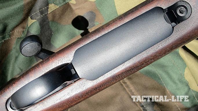 The company said it could take a cheaper route and use a wood filler, but it wants this rifle to show as strong as it shoots, and develop its own stock character with age. Considering how much more personality well-used wood exhibits than well-used fiberglass, the stock is one of this rifle’s best features for me. A solid, no-vent Pachmayr Decelerator pad teams with the rifle’s overall weight and the relatively tame .308 caliber to make the configuration very comfortable off a bench or bipod.