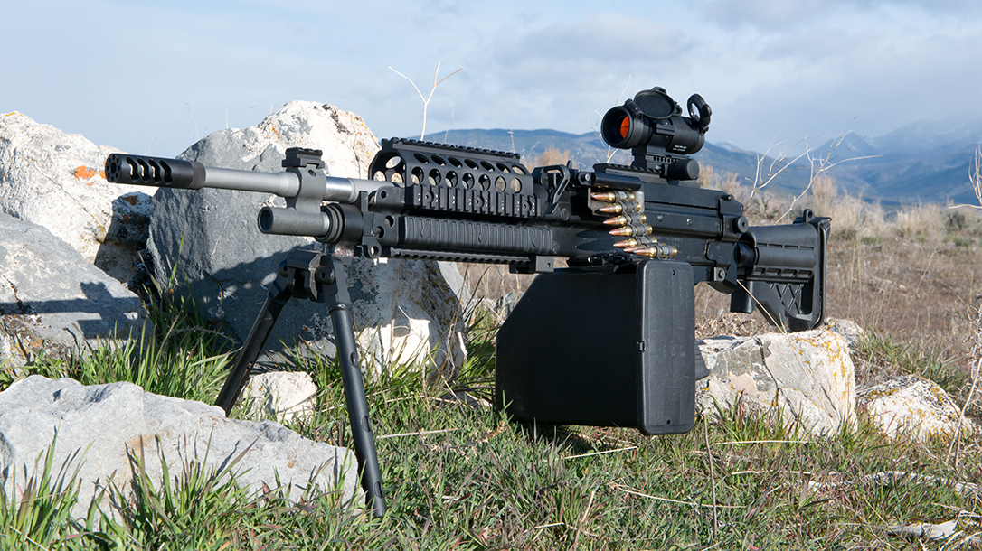 I’ve always encouraged innovation, so the 6.8 SPC has been on my radar since its introduction. I always have at least one 6.8 SPC AR in my inventory. I also fielded a short-barreled AR in 6.8 SPC on my SWAT team, where it served me well. The only real issue has been finding reliable magazines, and LWRCI found a solution to that in its Six8 platform. Designed from the ground up around the chambering, the Six8 solves the magazine issue and offers reliable feeding. Some of our Middle Eastern allies—never convinced of the 5.56mm’s effectiveness—were interested enough to buy several thousand 6.8 rifles. This prompted the next logical step, a belt-fed machine gun in 6.8 SPC.