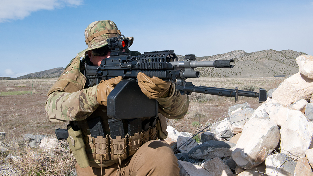 Squad-level machine guns have been around for decades. Small units need something beyond their primary weapon for suppressive fire, or concentrated high rates of fire. Belt-fed machine guns are just about perfect for this task, which is why they are a mainstay for several military units. While many general-purpose machine guns fire the 7.62mm NATO, such as the M240, 5.56mm versions were developed for smaller units. These machine guns offer higher capacity, less weight and greater portability. The 5.56mm M249 squad automatic weapon (SAW), for example, met small-unit needs and provided ammunition compatibility among team members. Many NATO allies adopted the same system. Talk to those who’ve used them in the field, and you’ll find that the 5.56mm versions were either loved or despised. Not nearly as consistently dependable as the M240, they suffered from some reliability and wear issues.