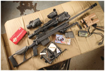 As to the accuracy of this unit, when I got to the range, my first shot with the .22 LR on a 50-yard target was within an inch of my aiming point, and the magnum was within 3 inches. Both would have been on paper at 100. Frankly, I didn’t think the barrel crown on a typical production rifle would be square enough to allow laser bore sight to work, but apparently it is.