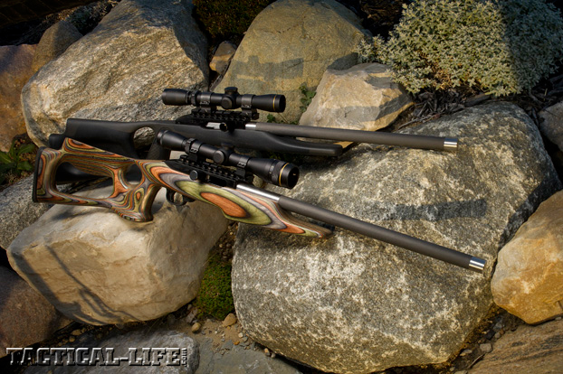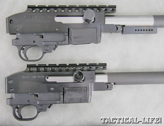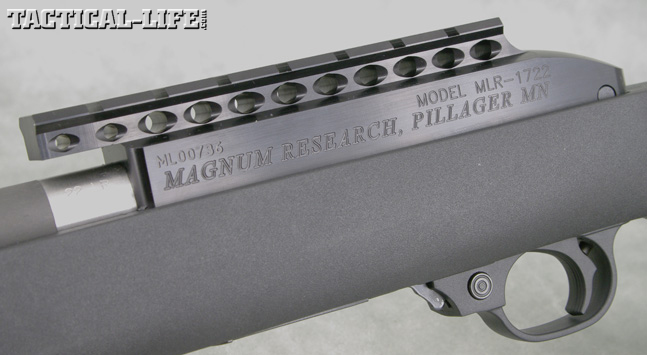 The MLR receivers, which differ, of course, because of the cartridges in question, are CNC-machined from 6061-T6 aluminum forgings to tolerances tighter than those found on Ruger factory guns. They also differ from the original equipment manufacturer (OEM) versions in that they have integral Picatinny rails with eight ring positions on the LR and seven on the magnum. At the base of the rails are transverse holes, which I’m pretty sure are cosmetic rather than further attempts to lighten what are already very light rifles. I must say, it looks pretty cool!