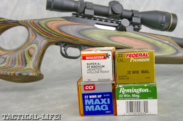Ammo-wise, we were able to scrounge up four loads for each rifle. For the LR we used Federal Gold Medal Ultra and CCI’s Green Tag—both match loadings—and for the high velocity/plinking loads CCI’s Stingers and Winchester’s Power Points. For the WMR, we used Federal, Winchester, CCI and Remington loads, all of them with the exception of the Federal load 40-grain jacketed hollow points (the Federal was a 30-grain JHP).