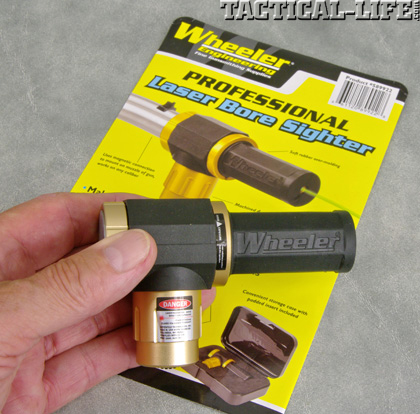 Another gizmo I had the chance to use in conjunction with testing these two rifles was a new laser bore sighter from Wheeler Engineering. It is by far the easiest and fastest bore sighter I’ve ever used, and it works unlike any other. Instead of using the bore itself or a caliber-matching arbor, to which a grid is attached, to direct the laser beam downrange, the Wheeler Professional Laser Bore Sighter magnetically attaches to the muzzle of the firearm. The magnetic surface, which measures 1.1 inches in diameter, is perfectly flat and highly polished. You simply ease the powerful magnet toward the muzzle, allowing the unit to clamp thereon. You then simply turn on the laser and direct it to a surface 25 yards or so away, and adjust the reticle to coincide with it (the longest distance in my house is 66 feet, so I was a bit short of 25 yards). You really don’t need a shooting bench or a rest of any kind. I simply raised the gun to my shoulder to see where the reticle was in relation to the beam, made my windage and elevation adjustments, then rechecked. I repeated the process a couple of time and was done.