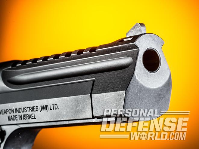 There is also an ambidextrous, slide-mounted thumb safety on this semi-auto. I found it far much easier to engage and disengage with my support hand as opposed to using my strong-hand thumb from a firing grip. In any event, the Desert Eagle’s manual recommends carrying the gun with an empty chamber.