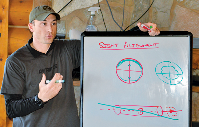 The Magpul Dynamics team walks the students through several drills that help them establish the NPA and illustrate its value. The most notable drill was having the shooter align his rifle, close his eyes and break the shot. A shooter with a properly established NPA will hit the target precisely on the point of aim. The shooter who is floating the crosshairs with muscle alone will get a shot placement that reflects his body position, not the crosshairs, as the eyes are no longer correcting the body. Those shooters accustomed to taking dynamic shots at shorter ranges with a light rifle and smaller calibers had the most to learn. Close-quarters and off-hand shooting require a different set of skills and short of a consistent and properly adjusted cheekweld, the NPA is less of a factor. But extend the range and require precision, and the NPA becomes critical.