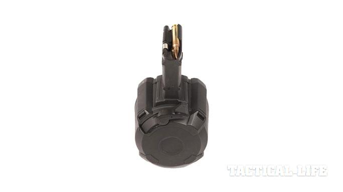 The PMAG D-60 holds 60 rounds, and while you might think it’d be hard to defeat the spring tension once you get close to filling it up, Magpul has included an ingenious ratchet mechanism that lightens the spring tension for easier loading. Finally, the D-60 is compatible with many aftermarket loading devices, and a bolt-hold-open feature is included for faster running and gunning on the range or battlefield.