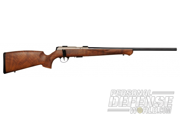 The T-Bolt is one of my favorite .22 rifles. With a receiver machined from steel bar stock, it has a cat-quick straight-pull action, a clever 10-shot “double helix” detachable box magazine that fits flush. The three-lever trigger breaks cleanly; the tang safety is convenient and positive. Both Sporter and Target/Varmint versions come in synthetic and walnut stocks. For 2014 you can also choose a Maple Sporter. But there’s a catch: This strikingly handsome 5-pound T-Bolt will be made only to satisfy dealer orders. It’s not a catalog item. By mid-year, I’m told, this limited run will be distributed to dealers. Treat yourself to a superb .22 in lovely wood.