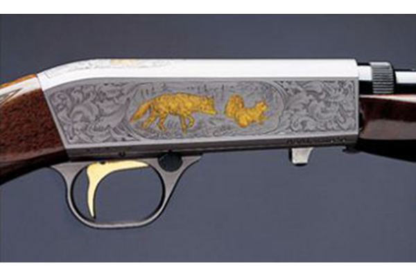 No rimfire rifle has a more distinctive profile than this self-loading, bottom-ejecting takedown of John Browning’s own design. Its tube magazine is contained in the butt-stock; the slim 16 ½-inch barrel can be easily and quickly removed (with forend) by hand. Beautiful checkered walnut and a receiver as taut as a wasp’s waist make this every boy’s dream. In 2014 you can choose not only a Grade 1 or a Grade II, but a 100th anniversary model with gold inlays, deep engraving and exceptional wood. It will be manufactured only this year, in limited quantities.
