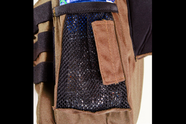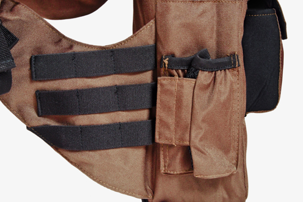 * Adjustable chest strap with quick-release clasp and utility pocket