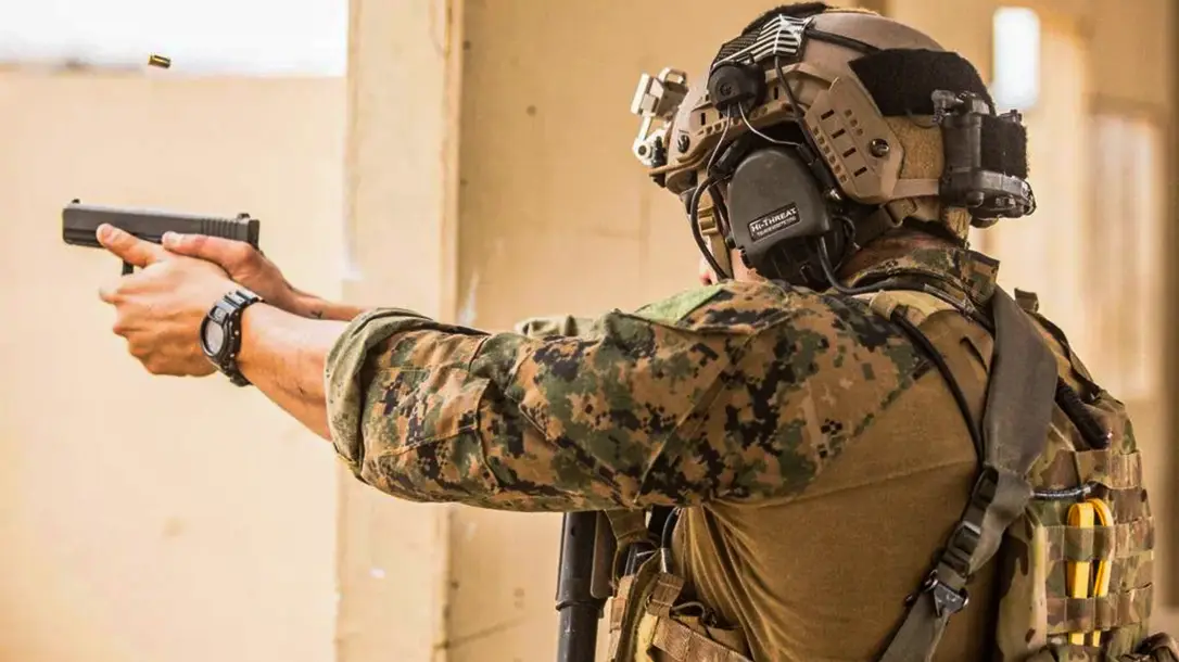 With that feedback, the Corps issued a Marine Administrative Message, or MARADMIN, that green-lighted Marine Corps Forces Special Operations Command, or MARSOC, units to use the Glock 19. While the age-old argument of .45ACP vs. 9mm raged in this decision, the Glock 19 still won the day. Modern ammunition and magazine capacity are two critical factors in a war fighter’s mind. A Glock 19 chambered in 9mm checks both of those boxes.