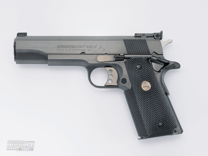 In my early 20s, I was able to acquire a Colt National Match, the predecessor of the Gold Cup. This one left the factory in 1962 and was tuned as a target pistol for hardball matches by the U.S. Air Force Marksmanship Training Unit. It quickly became my favorite pistol. I carried it in uniform at all three of the police departments I worked for over the years. Soon its gorgeous, glass-smooth Royal Blue finish was fogged by a haze of scratches and holster wear, the grip panels gray in front and back from the constant hand contact that comes with heavy shooting.