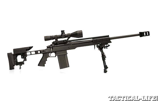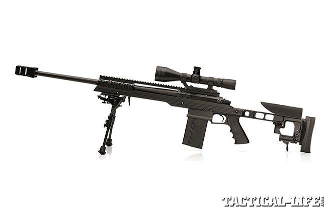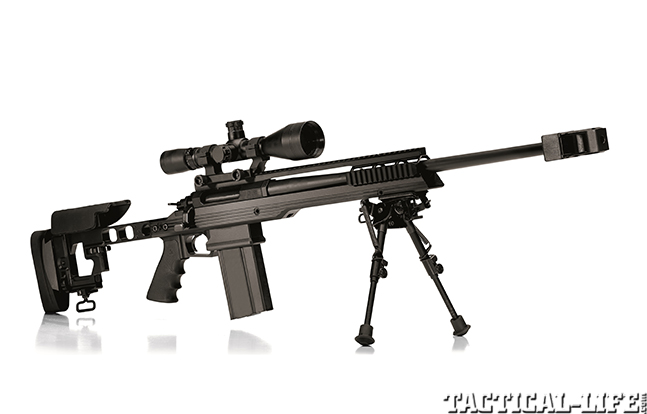 The massive CZ-USA 750 Sniper rifle uses a proprietary 10-round magazine to dispense tactical justice out to 800 yards. The synthetic, thumbhole stock is adjustable for comb height and length of pull. The underside of the forend is fitted with a rail for mounting a bipod. The Sniper comes with a 26-inch, 1-in-12-inch-twist barrel with four-groove rifling and a muzzle brake, a thread protector, a mirage shield and two 10-round detachable magazines. (cz-usa.com; 800-955-4486)