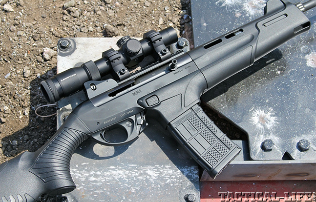 Benelli’s MR1 is the non-pistol-grip version of the company’s AR-magazine-compatible semi-auto. Lacking a pistol grip and threaded barrel, it makes a great choice for those who live in states with “assault weapons” bans. The MR1 has Benelli’s attractive Italian styling as well as a recoil-absorbing buttstock, a top rail for optics, a rear aperture sight, a protected front sight and an easy-to-use charging handle on the right side. The Benelli MR1 comes with a five-round detachable box magazine. (benelliusa.com; 800-264-4962)