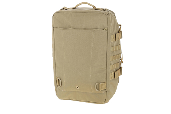 This multi-purpose duffel bag has an overall length of 13 inches, a width of nine inches, a height of 20 inches, and a volume of 38 liters. Meanwhile, the main compartment is 12 inches long, eight inches wide and 19 inches high. The exterior front boasts an integrated padded grab handle made from 1.5″ webbing, four rows of seven-channel PALS webbing, one 12″ x 7″ zippered slip pocket, and full dual-directional zippered access to the main compartment. The main zippers are lockable, #10 YKK self-healing zippers.