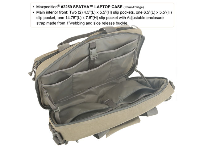 The Spatha Laptop Case, like all of Maxpedition’s laptop bags, features padding for your laptop and a checkpoint friendly design, making it perfect for travel. According to the product listing, the Spatha comes with organized pockets for your electronics and gear, as well as an internal loop field enabling you to attach Maxpedition’s Hook-&-Loop accessories. In addition, it comes with interior security straps to keep your laptop secure in the case. The Spatha may be carried by hand or using the removable Tactical Shoulder Sling. It also has a rear luggage strap so it can be stacked onto rolling luggage. Designed for 15″ and smaller laptops, the Spatha is currently available in Black, OD Green, Khaki, and Foliage Green. The MSRP is $166.99.