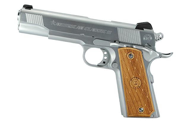 The American Classic II is a single-action, 1911 style pistol available in both .45 ACP and 9mm. Constructed of 4140 alloy steel, it is tougher than conventional carbon steels and more resistant to corrosion.