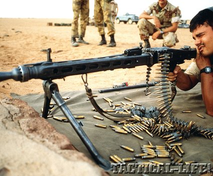 The U.S. M-60—an adaptation of the WW II German FG-42 Fallschirmjager Gewehr paratrooper rifle—and the German HK-21, a belt-fed variant of the G-3 Battle Rifle, also fall into the same broad category. In each case, the contemporary weapon can trace its genesis back to the WW II-era German MG-34.
