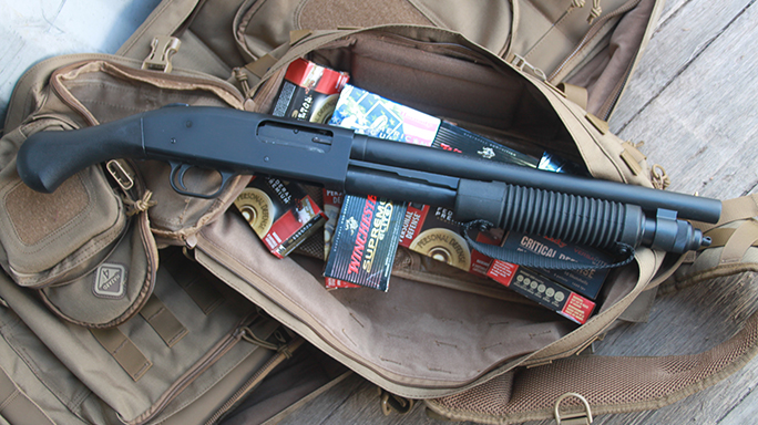 It’s hard to beat a short-barreled shotgun in close quarters, and now you can get something similar without all the NFA hassle. Thanks to its Shockwave Raptor bird’s-head grip, this particular Mossberg 590 is allowed to have a shorter 14-inch barrel without being classified as an NFA firearm per the BATFE.