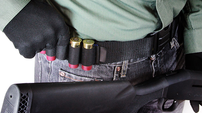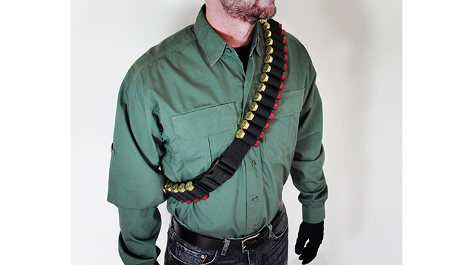 The Mossberg Shotgun Bandolier is capable of storing up to 45 shells and is built to ensure your shells stay in reach for quick reloading. Designed for heavy duty field use, the bandolier boasts a durable nylon construction with reinforced stitching and nonslip elastic storage loops that can hold 12, 16 or 20 gauge. shells. A heavy duty tri-lock buckle for a strong and secure latch. The over-the-shoulder design of the bandolier is fully adjustable from 48 inches to 58 inches to accommodate shooters of all sizes, and a removable five shell storage pack is included as well. MSRP is $29.99.