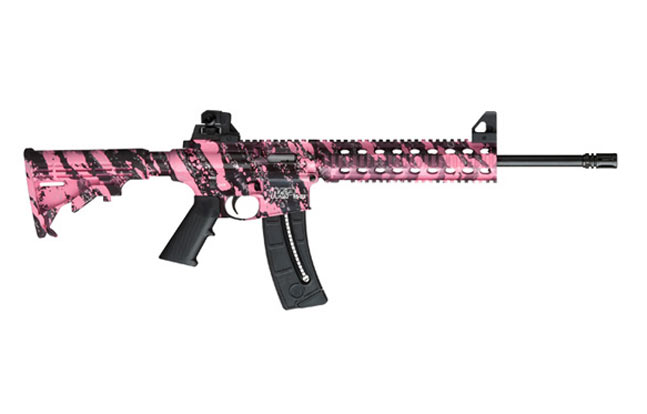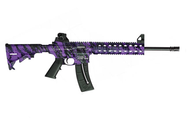 Smith & Wesson‘s popular line of M&P15-22 rifles has been expanded with four all-new color variations for 2014: Pink Platinum, Purple Platinum, Tan and Black, and Harvest Moon Orange. Watch the video below to see these rifles up close.
