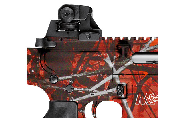Chambered in .22 LR, the semi-auto S&W M&P15-22 has been designed from the M&P15 and built from the ground up. It contains all the features and specifications of a modern centerfire M&P15 rifle. Indeed, the S&W M&P15-22 features a 16.5″ steel barrel with a 1:15 twist, adjustable front and rear sights, a 6 position CAR stock, a 25-round magazine capacity, a length of 33.75″ when extended and 32.5″ when collapsed, a 2-position safety lever, an overall weight of 5.5 pounds, and all-Polymer upper and lower receivers.