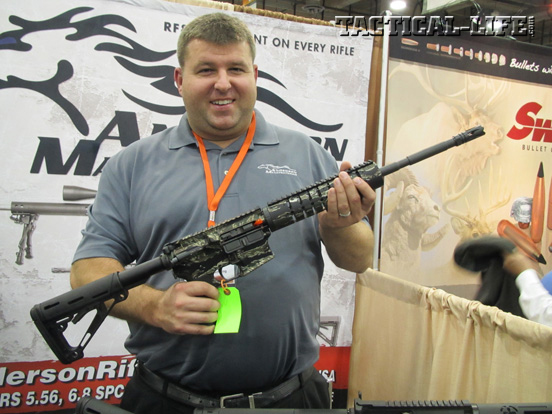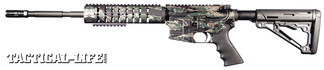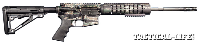 The AM15-M416 Tiger produced by Anderson Manufacturing in northern Kentucky is an optics-ready AR that sports a tiger-stripe camo finish. The 16-inch M4 heavy barrel is chambered for .223 Rem/5.56mm or 6.8mm SPC. It is outfitted with a Magpul six-position MOE stock, Hogue pistol grip and a quad rail handguard that free-floats the barrel. The Tiger is built with a 7075-T6 aluminum receiver. The gas block is low profile without a rail. Like all Anderson rifles, the Tiger goes through a proprietary RF85 treatment, which means the rifle cycles faster. For more information, visit andersonrifles.net or call 859-689-4085.