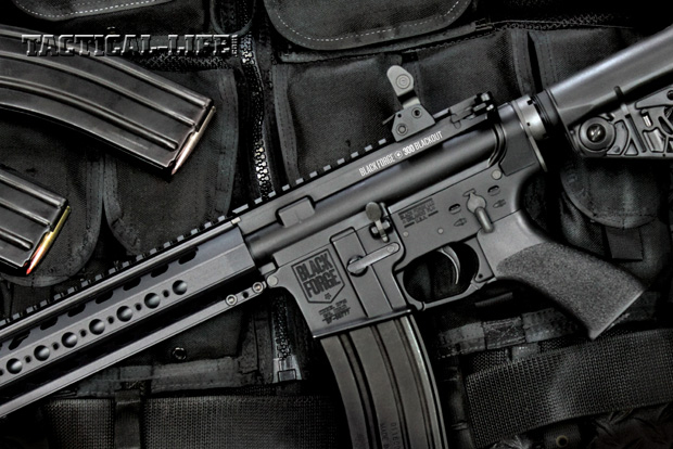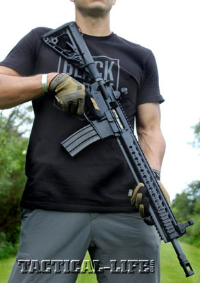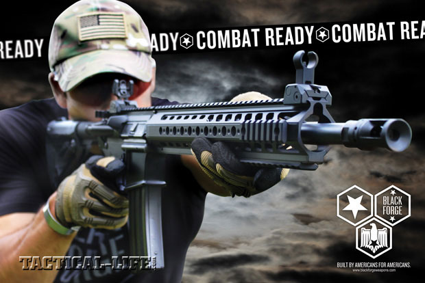 Black Forge builds AR rifles with the traditional direct gas impingent system, but the new 300 Blackout chambering is anything but traditional. The T1R is set up like an M4 except with a 16-inch barrel. It comes optic-ready with a 13.5-inch top rail and low-profile gas block. The barrel muzzle sports a Carlson Comps Impact Brake. The furniture includes an adjustable, cam-lock Rogers Super-Stoc, and either an MOE or US Palm grip. An oversized triggerguard is also featured on the lower. A 30-round magazine is included. The MSRP is $1,425. For more information, visit blackforgeweapons.com or call 407-737-7222.