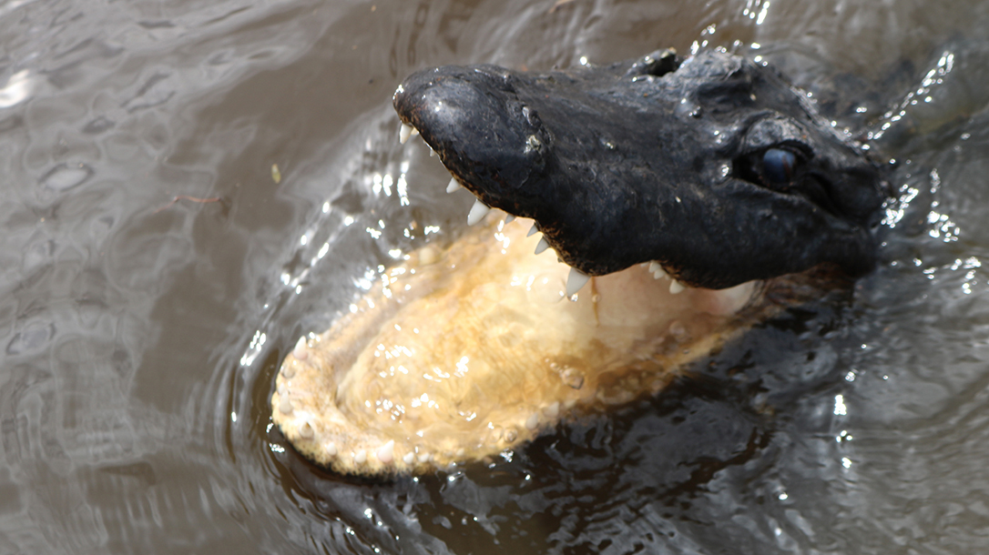 And did you know that gators like marshmallows? After we parked ourselves in a quiet corner of the swamp, a 7-footer slithered up to the boat ready for a snack. A marshmallow on a stick brought the thing out of the water with extraordinary vigor. I got close enough to examine his dentition in remarkable detail.