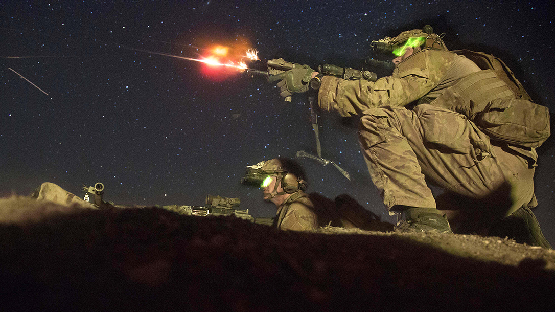 What most people think of when the term “night vision” comes up is the green-image view from an image-intensified device like the PVS-14 or the older PVS-7. Hollywood has shown this view in movies for decades, and news broadcasts shown during the invasion of Iraq and many other military conflicts show a green, pixelated image of a darkened city with ribbons of anti-aircraft fire heading into the clouds in search of American bombers. This perception is not without merit. At this point, most U.S. service members engaged in direct ground combat are issued an image-intensifying night observation device (NOD). These image intensifier devices have reached the point of being almost ubiquitous.