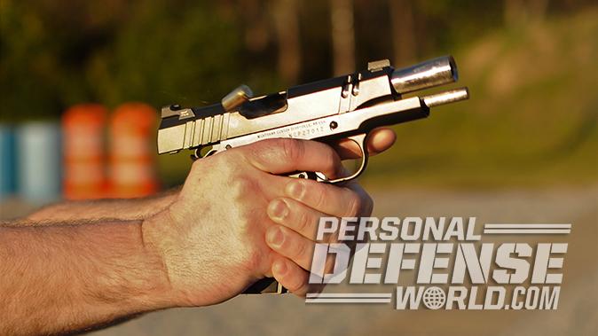 The faceted tri-cut frontstrap and mainspring housing, combined with the tri-cut stocks, give the pistol a different feel in the hand. Most of those who handled and shot the Tri-Cut Carry were complementary of the contours and feel of the pistol. The large angled flats on the leading edge of the stocks worked well with the tri-cuts. The trigger on our test pistol also broke cleanly, averaging 4.3 pounds.