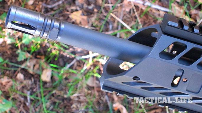 The 16-inch, free-floating barrel has a 1-in-10-inch twist rate as well as a birdcage-style flash suppressor.