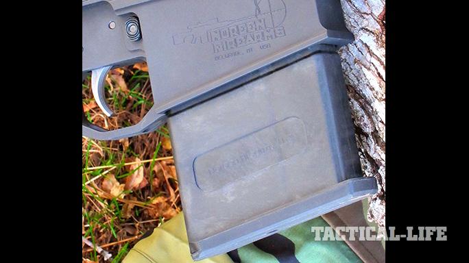 The grip, also skeletonized, is made by Tactical Dynamics. It’s made of hardcoat anodized aluminum and is finished to match the black surfaces on the rest of the carbine. At the tail end you’ll find a polymer, five-position Luth-AR MBA-4 stock with a non-slip buttplate. The lower receiver uses a proprietary, synthetic 20-round magazine. Blocked 10-rounders for hunting and other capacity-restricted purposes and locations are also available.