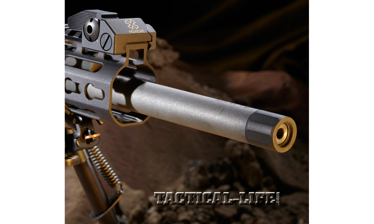 Other features include a BCM Gunfighter charging handle, Noveske Signature backup iron sights made by Troy Industries, a forged lower receiver with a mil-spec receiver extension, a Geissele Super Dynamic-Enhanced (SD-E) trigger, a Noveske Short Throw Safety Selector switch, a Magpul PRS Stock and a Magpul MOE Grip. The rifle may be the perfect AR-15—everything you need with nothing you don’t.