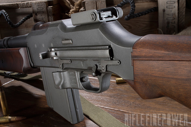 When I saw a semi-auto-only 1918A3 Self-Loading Rifle (SLR) from Ohio Ordnance Works at a recent firearms exposition, I had to give it a try. Several weeks later, the delivery man was at my door with a huge and heavy box that I wrestled into the living room. Cutting through the cardboard, I found a black Pelican gun case and inside, nestled in foam rubber cutouts, was the 1918A3 SLR and a number of accoutrements. Per the Ohio Ordnance literature, the gun comes standard with two 20-round magazines, a web sling, a carry handle, a bolt hold-open device, a flash suppressor, a cleaning kit and an owner’s manual. The optional Pelican case also came with two more magazines, a front sight hood and a maintenance kit that had spare parts and tools to keep the SLR running. The neat thing was that these parts were USGI surplus, some with tags indicating they were from the Korean War era…