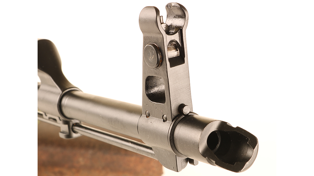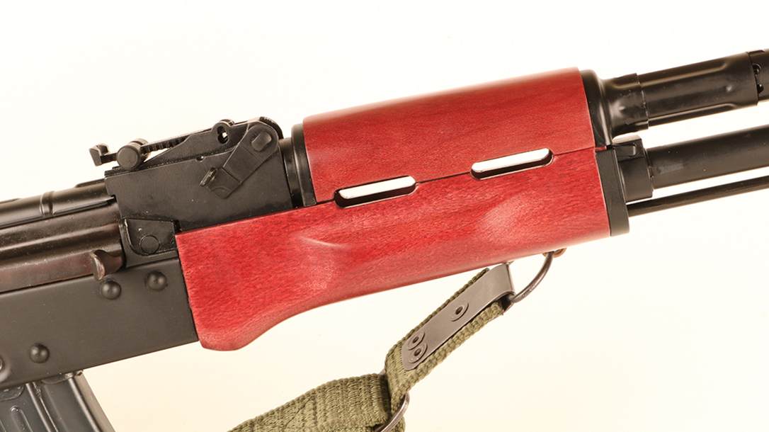 The standard fixed-stock AK carbine really is a great home-defense tool. The short, stubby architecture makes the gun maneuverable in tight places. The weapon corners nicely indoors and even runs fairly well from a vehicle. The rear sling swivel is mounted on the toe of the buttstock, and the front attachment point is on the left side of the gas block. This is a suboptimal solution yet remains serviceable enough. I toted these guns around my rural farm for a while just to get acquainted, and it wasn’t an unpleasant chore.