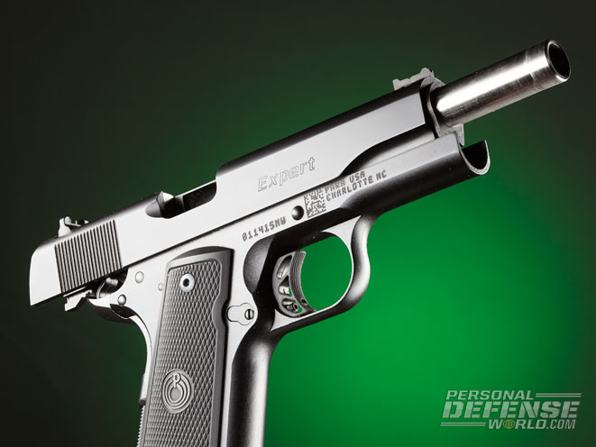 To prevent the Expert from firing if dropped on its muzzle, Para USA uses a Series 80-style firing pin safety that mechanically blocks the firing pin from contacting the primer unless purposeful pressure is placed on the trigger.