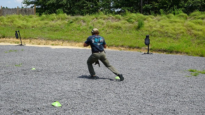 Don’t get me wrong. Flat range work is essential. Deep practice of the fundamentals until they can be performed at an intuitive level is absolutely necessary. Proper bullet placement and an acute understanding of gun handling and safety are paramount and should be performed with two feet flat on the ground while in a stationary position. But movement is necessary, too.