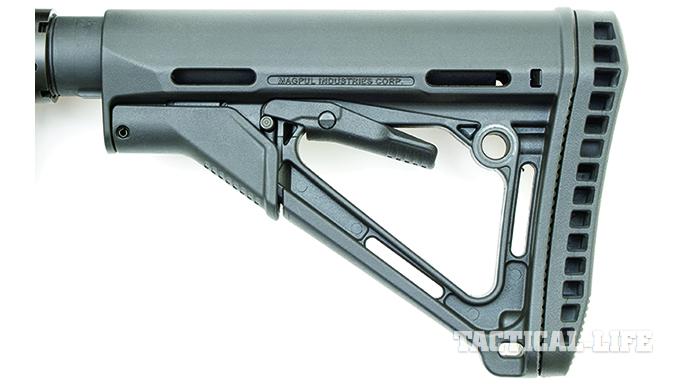The Magpul CTR buttstock can easily be adjusted to six different length-of-pull positions to fit a wide variety of shooters.