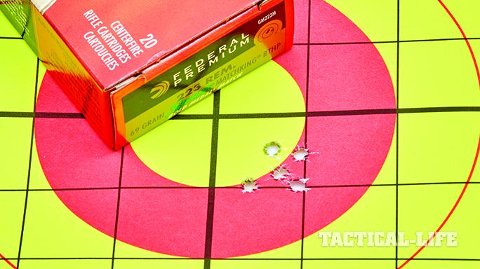 My test ammunition consisted of Winchester 55-grain FMJs, Federal 69-grain Gold Medal Match BTHPs and Creedmoor 77-grain Tipped MatchKings (TMKs). The Winchester load was never intended to be match-quality ammunition, but it got the scope sighted-in and served as a good test load for general reliability. However, even these rounds created five-shot groups averaging 1.5 inches, and many AR owners would be happy with those results.