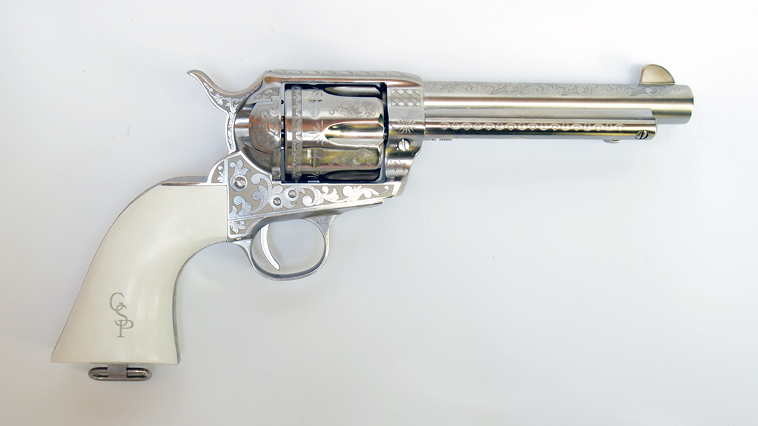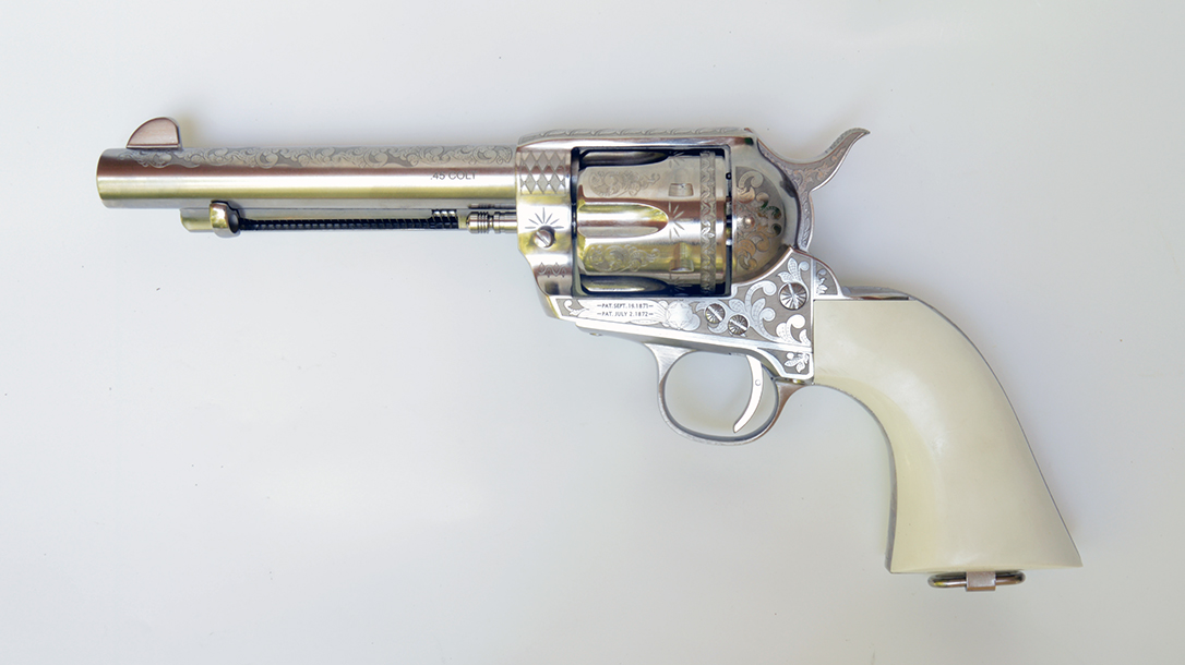 I believe the six-shooter’s appeal to Patton had very little to do with its long military history. Otherwise, he would have just bought himself a military-style, 7½-inch-barreled Colt with a blued finish and plain wood grips. Patton needed more romanticism than the Colt’s cavalry lineage could provide. That’s why he chose a heavily engraved, nickel-plated, 4¾-inch-barreled model with ivory grips. This was a very expensive gun, costing $50 at a time when the standard model ran about $12.