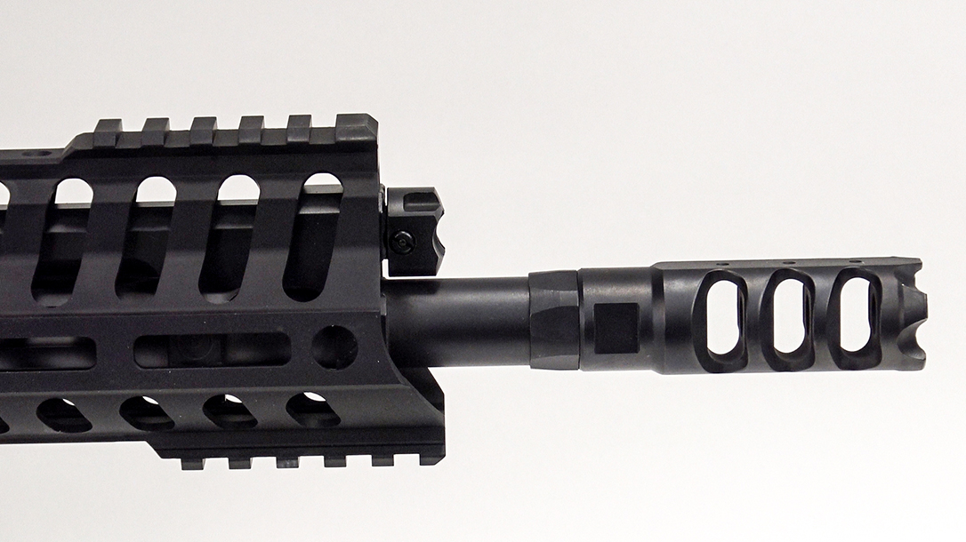 With the Revolution, POF-USA has chosen to use a match-grade, 16.5-inch, chrome-alloy barrel with a 1-in-10-inch twist rate. The barrel is nitride heat-treated for full corrosion resistance and topped off with POF-USA’s easily recognizable triple-port muzzle brake. This brake is designed to help reduce felt recoil so shooters can get back on target quickly for fast follow-up shots.