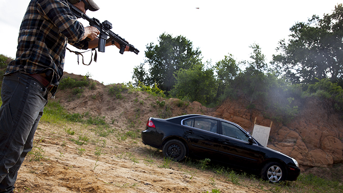 If we need to shoot from behind our new vehicular cover, we need to understand the effect that glass will have on outbound bullets. Side glass has minimal impact on the integrity of a bullet. However, shooting through side windows still limits our angles of fire. If we begin to track a target left or right, our bore line will become obstructed by pillars, the cabin and windshields. Arm-chairing our tactical response, this might not seem like an issue. But during a stressful situation, any additional stimulus, even as insignificant as tracking past a pillar and reacquiring a sight picture, can cost us valuable time.