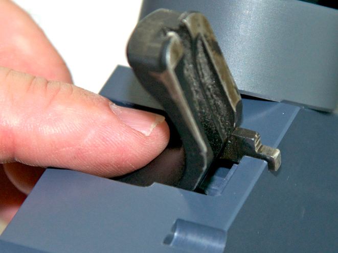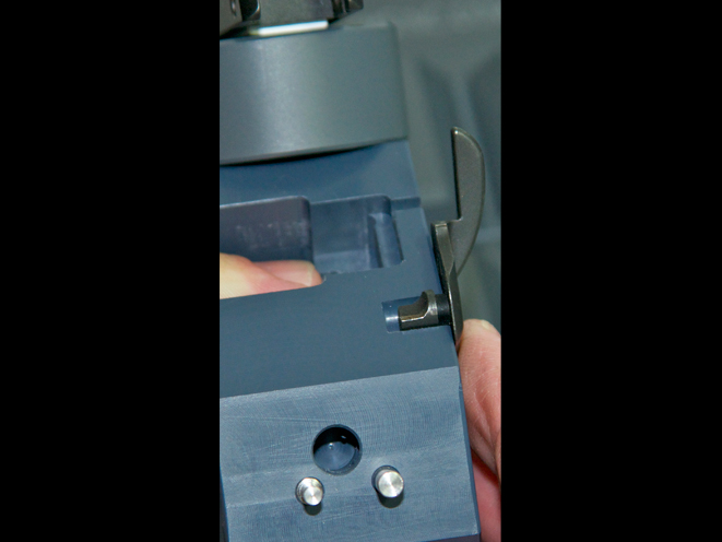 * Machined to hold the Thumb Safety to dress the Sear interface and can be reconfigured in another position to dress the Plunger interface.