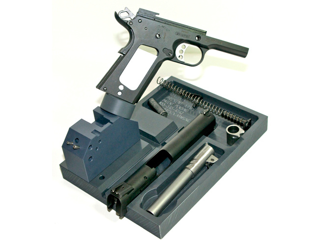 Present Arms Inc. is introducing their new patent pending 1911 Fixture Block. Machined from a Synthetic Polymer, the 1911 Fixture block is designed to assist the 1911 Armorer in disassembly, reassembly, repairs and critical inspection of the 1911 Pistol components.