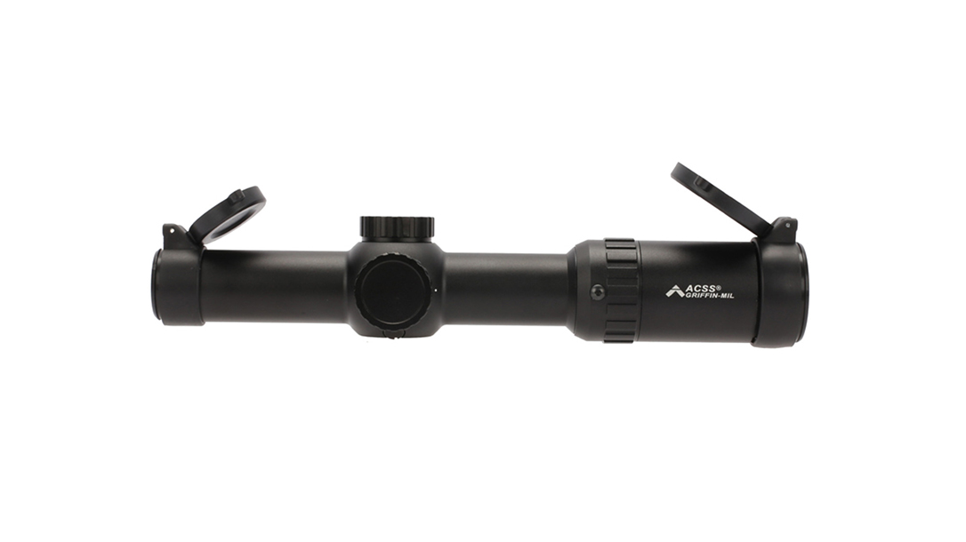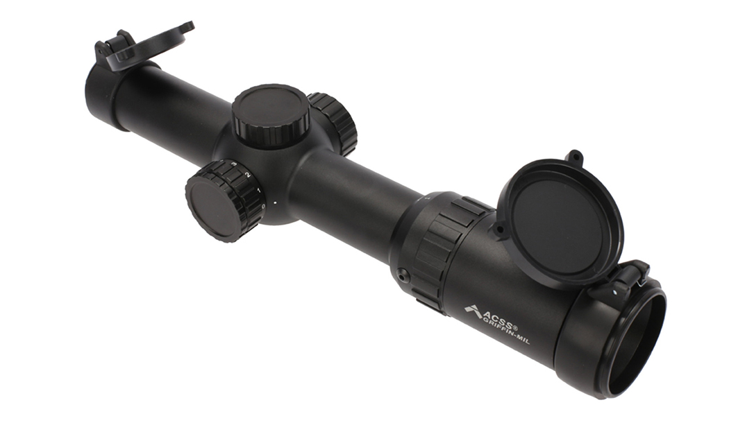 Meanwhile, the ACSS Griffin Mil reticle, which is calibrated to be true at 6x, features automatic ranging out to 600 yards; moving target leads; and 5×5 Mil matrix for precise shots. For calibers like 5.56mm NATO and .308 Win., the Griffin Mil can compensate for bullet drop from 100 to 600 yards without having to do math or manually adjust knobs. Because it’s integrated with the Mil system, this scope can be used with any caliber when paired with a ballistic calculator, the company says.