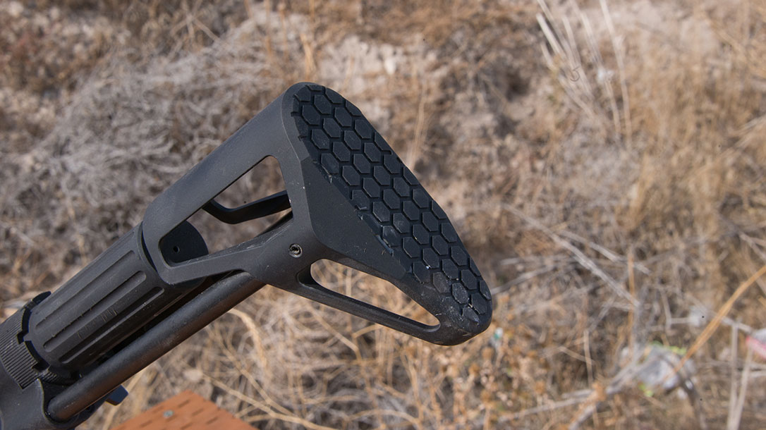 My initial testing involved clearing rooms in a shoothouse, and this is where the MK107 MOD 2 really shined. It’s handy and easy to maneuver. Loaded with DoubleTap 55-grain TSX ammo, this SBR is plenty lethal. I was also able to keep the Maxim Defense CQB stock centered against my plate carrier for solid support in close quarters. This keeps the SBR in close so you can easily work around corners. You pretty much just drive the gun where you need to go and you’re already on target. During about an hour or so of room-clearing practice, the stock never shifted or came loose.
