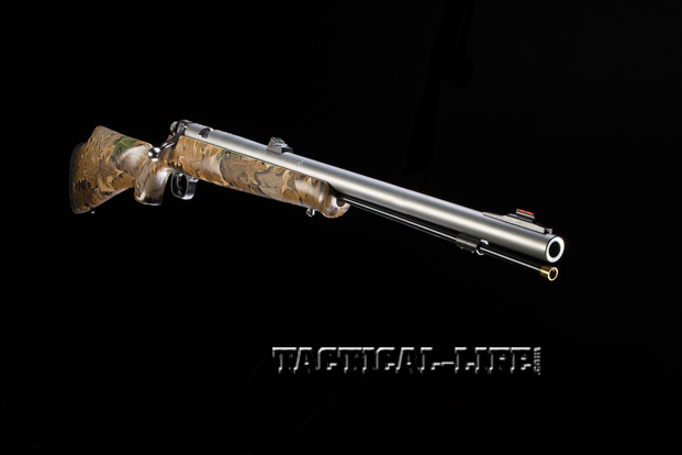 The MK85 was designed for use with saboted centerfire bullets for excellent accuracy and killing power. The in-line design was more dependable and made the rifles easy to clean thoroughly, too. And, the rifles were also shorter and lighter, making them easier to carry and use. Double safeties made them safer, and they were designed for mounting scopes.