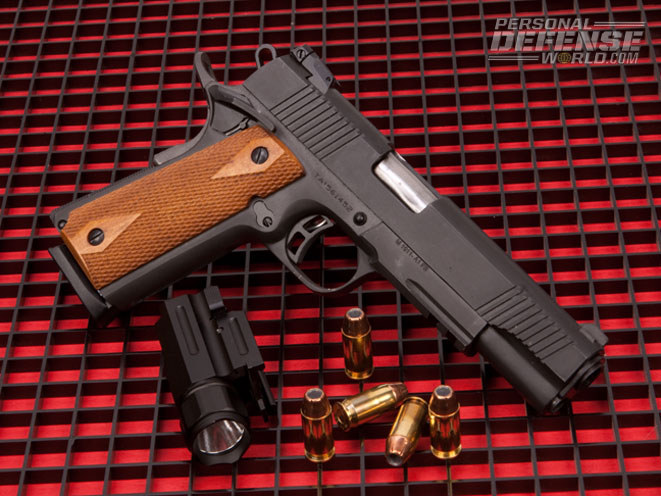 The Taylor’s Tactical division of Taylor’s & Company in Winchester, Virginia, has begun to import a 1911-style pistol equipped with an accessory rail. We hear a lot about tactical pistols these days. It seems like anything with an accessory rail is bestowed with the “tactical” label. To me, a tactical handgun is a full-sized pistol in a serious fighting caliber that is suitable for combat operations. On that basis, with two world wars and countless smaller conflicts under its belt, John Browning’s remarkable Model 1911 pistol is absolutely a tactical handgun. The iconic 1911 has earned its tactical chops, regardless of its configuration, but there are definite advantages to a rail-equipped pistol.