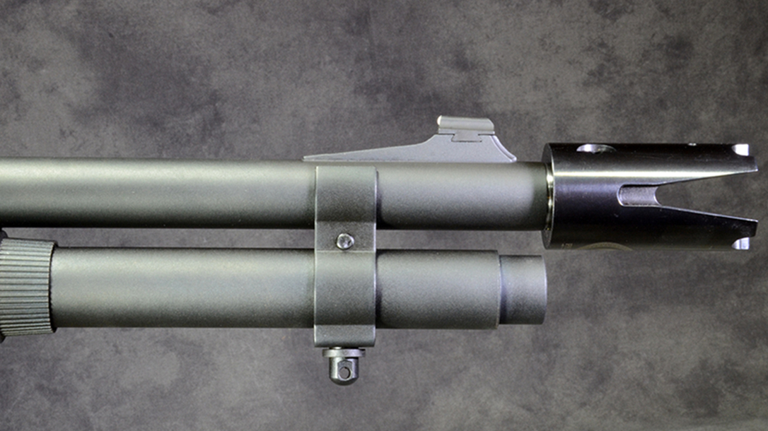 Recently, though, the spreader choke is back in production with Paradigm SRP for use by contemporary special operators. This is a completely redesigned Duckbill that has been beefed up substantially so that it will not fracture with extensive use. Original U.S. military Duckbill chokes were normally soldered onto the shotgun, which meant that the shotgun was really only designed for effective use in limited tactical situations. The new Gator, as it’s called, on the other hand, is designed as a screw-in choke, which may be installed for situations where its horizontal spread offers an advantage or removed to allow another choke to be installed for more general use.