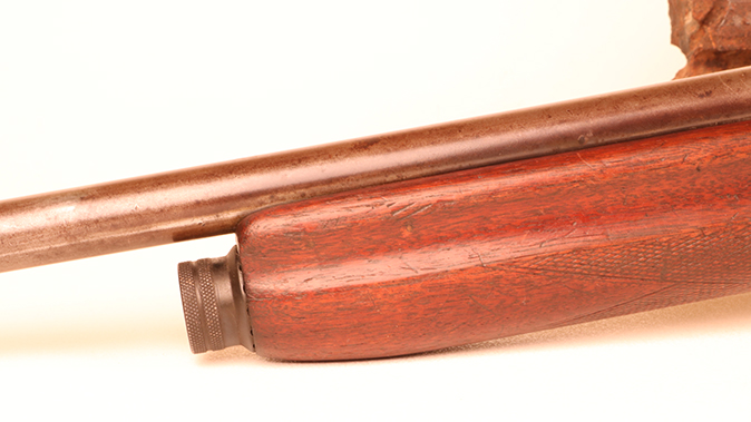 This Model 11 sported a long 28-inch hunting barrel. I pruned the tube back with a cutoff wheel on my table saw and dressed the muzzle end with a Dremel tool. I cut mine to just a hair longer than 18 inches, the legal minimum.